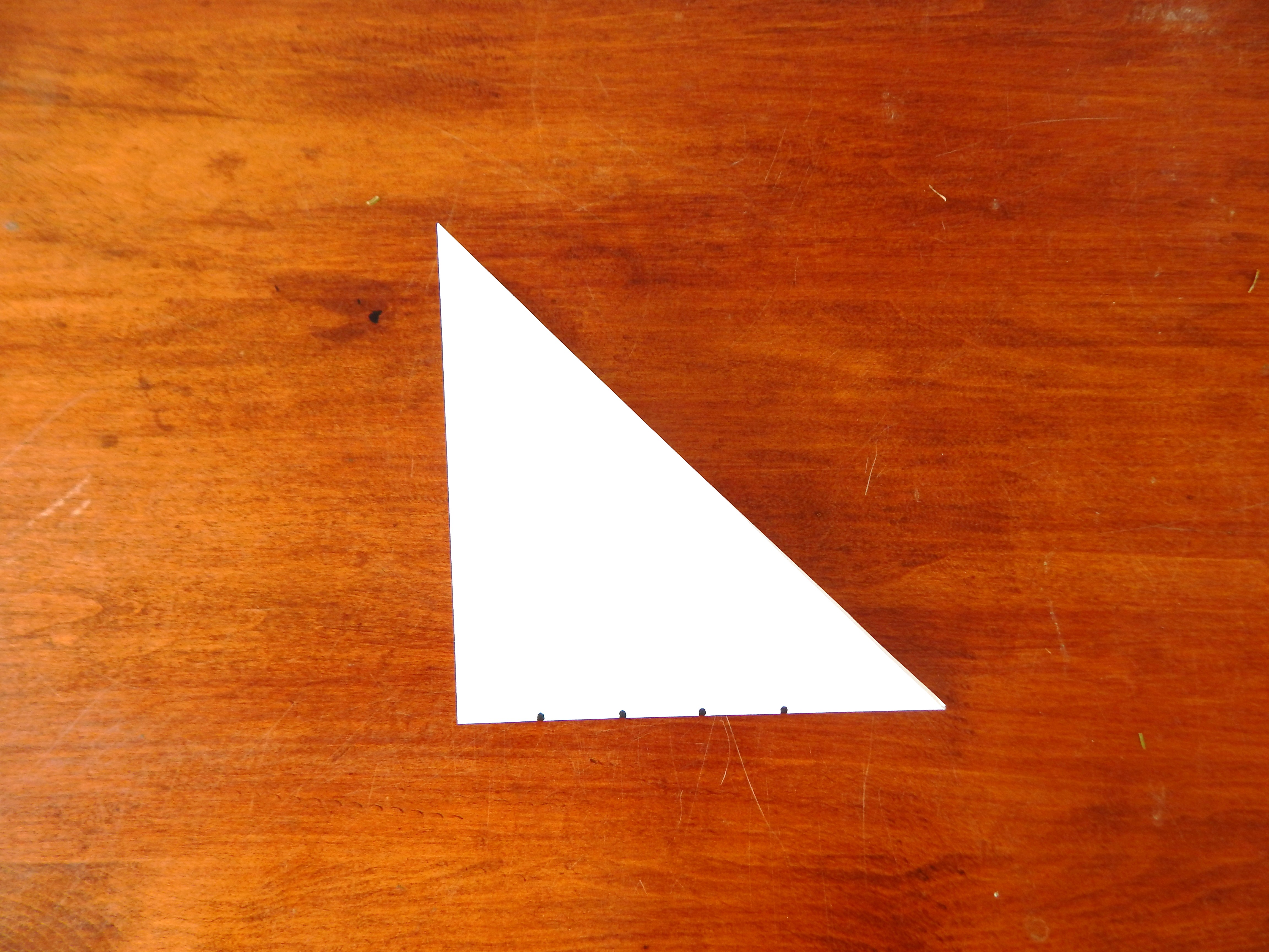 Starting at the bottom, left corner of the triangle, measure off four, one inch segments, marking each with a dot.