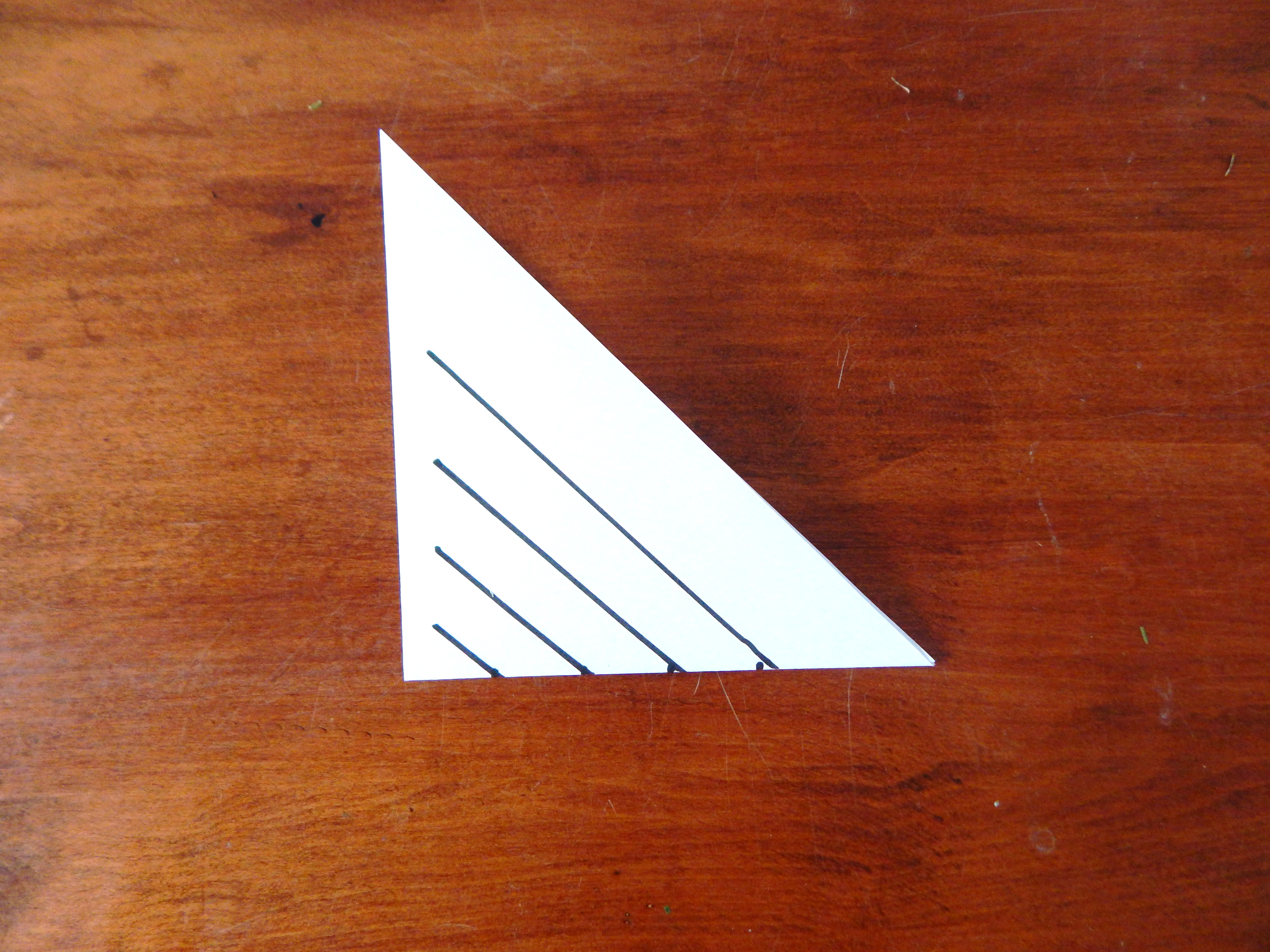 Finally, from the last mark, draw a 1″ line. All of the lines that you just drew should run parallel to one another, as well as parallel to the outer, right edge of the triangle.